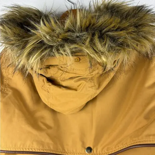 H&M Divided light brown/tan parka coat with a faux fur shearling lined hood. This coat is an oversiz... Show more