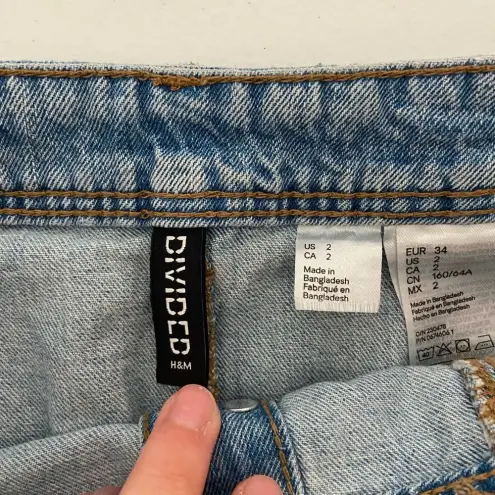 Women’s H&M Divided miniskirt. Skirt is light wash denim material. Has full front button. In good co... Show more