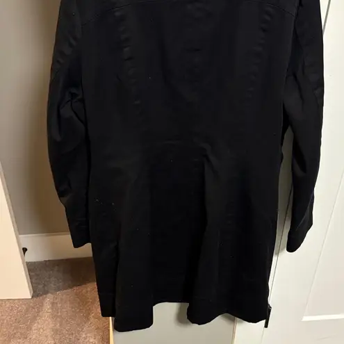 Stylish black trench coat with classic design. Perfect for versatile wear.