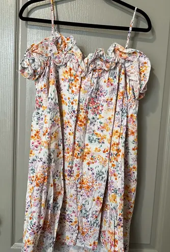 Charming floral womens dress featuring vibrant orange and pink hues. Perfect for any occasion with i... Show more