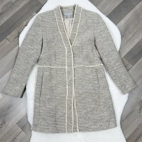 H&M Fringed Tweed Long Line Blazer Jacket Tan Size 10 Cream tan textured tweed Fringed reverse s... Show more