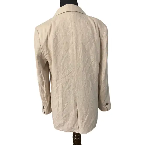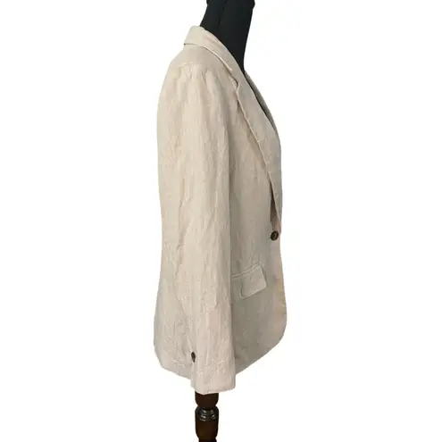 Classic beige lightweight linen-blend blazer by H&M. Single button front, flap pockets, fully lined... Show more