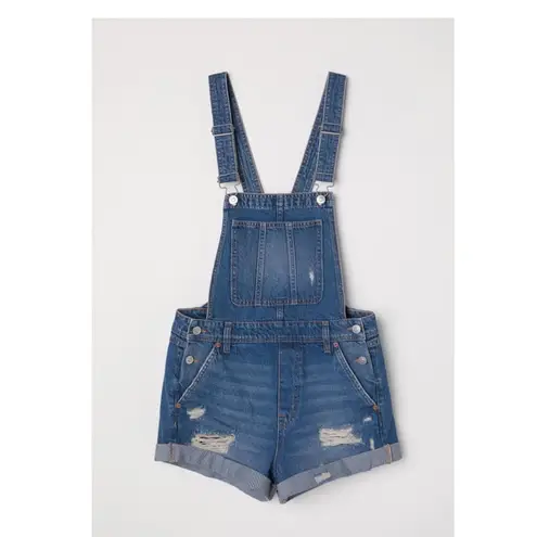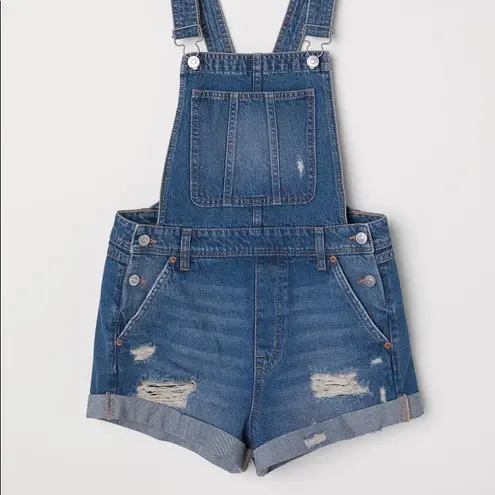 Short bib overall shorts in washed denim with heavily distressed details. Bib pocket, side pockets,... Show more
