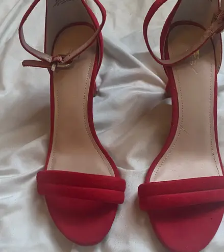 Chic red heels with a strappy design. Ideal for adding flair to any outfit.
