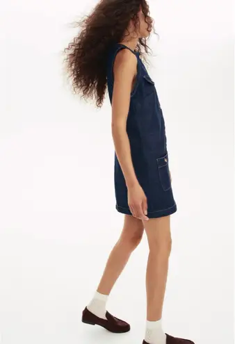 Short, fitted, sleeveless dress in rigid cotton denim. Round neckline, buttons at front, decorative... Show more