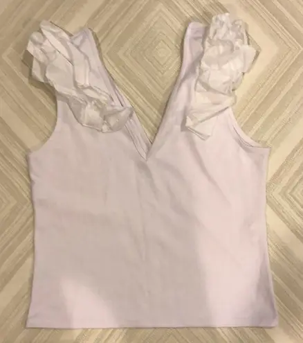 NWT. White V Neck tank top with ruffle on the arms. Made of polyester and viscose. VD.