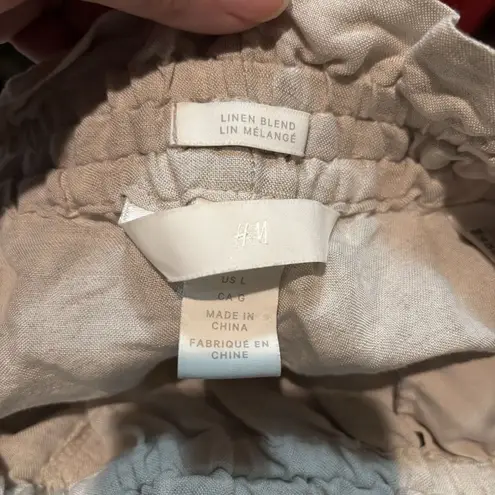H & M women's beige linen blend drawstring pants size large pockets Waist laying flat 16 inches In... Show more