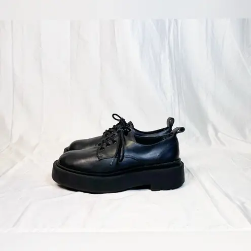 This pair of H&M Women's Black Leather Chunky Lug Platform Oxford Shoes are 10" from heel to toe, 3... Show more