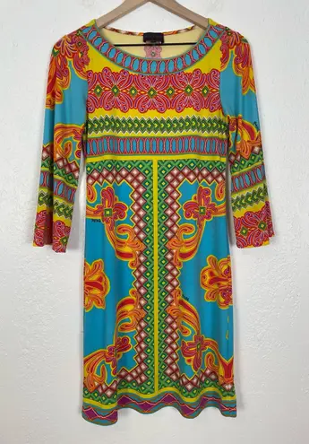✨ Details- ·Condition: Great condition, no flaws! ·Size: Small ·Measurements: Chest 16" / Length 35" / Sleeves 21" 📌 Please note: All measurements are approximate. ·Material: Polyester / Spandex 📝 Unless otherwise noted above, all of my items are free from pills, snags, stains, discoloration, etc. and come from a smoke free, pet friendly home. 🔍 Style Tags: boho, resort wear, psychedelic print, retro, 70s inspired, colorful, bold print, statement dress, vacation style, art deco, festival fashion, mod, geometric, mediterranean style, vibrant, patterned dress, luxe bohemian C2184