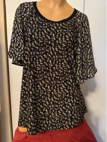 Halogen Blouse. Black with beige print. Size M. ruffled sleeves. Pullover style with flowy fit... Show more