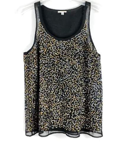 Halogen sparkle golg and silver sequin detailing mesh tank top. Size M Fully lined. Scoop neckline.... Show more