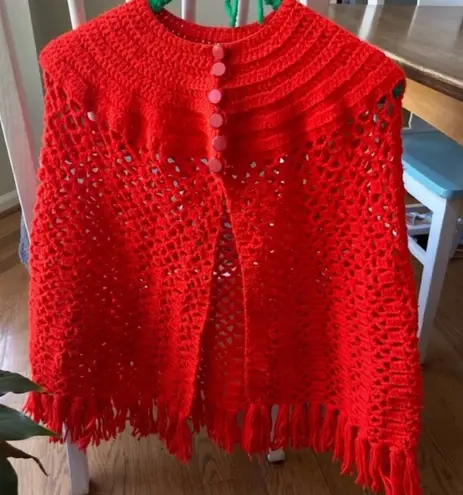 Handmade Knit Poncho Gorgeous Holiday Red Size M - $45 - From Lilorange