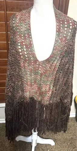 Vintage Hand Knit Crochet Poncho Cape O/S Boho Fringe Hippie Brown Forest Size undefined - $40 - From Lisa