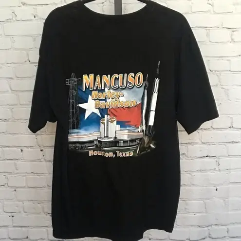 Men's black Mancuso Houston TX Harley Davidson T-Shirt 100% Cotton Preowned condition no major fla... Show more