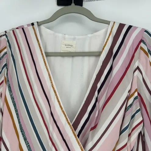 Harper Heritage Wrap Top Blouse Vertical Stripe Pink 3/4 Balloon Sleeves Size M Size M - $12 - From Jenna