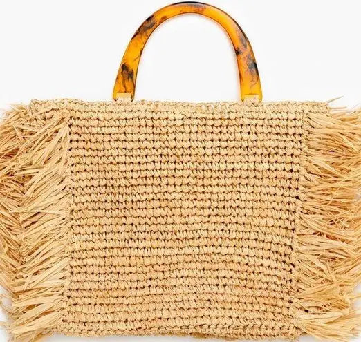 Hat Attack Tortoise Shell Handle Fringe Rafia Bag SOLD OUT ONLINE Tan - $89 - From Hannah