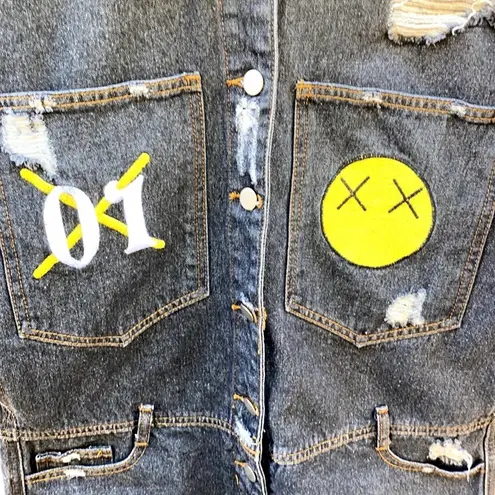 MODEL USED FOR REFERENCE- ROMPER IS A DARKER BLUE Good condition Jean romper with buttons and colla... Show more