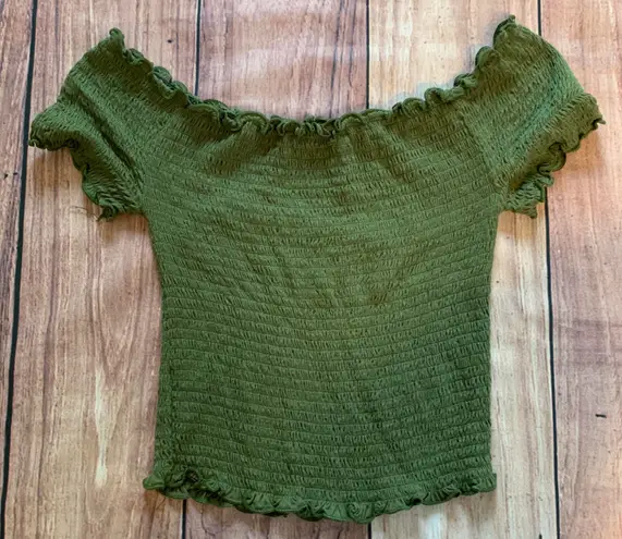 Item: Off the shoulder ruffled / smock crop top - stretch material Brand: Heart & Hips Condition: EU... Show more