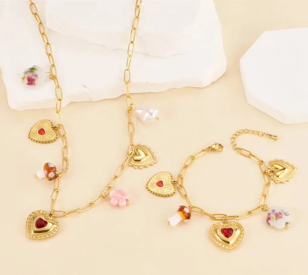 Heart Necklace and Bracelet Set with charms Gold - $35 - From Nasli