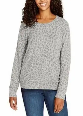 Colors: Gray (Heather Gray Leopard) Crew neck Relaxed fit Raglan long sleeves Banded hem and cuff Soft hand feel Made in Vietnam Content: 79% Viscose | 18% Polyester | 3% Elastane Sizing: Sizes: XS–2X Size Conversion: XS = 2 | S = 4-6 | M = 8-10 | L = 12-14 | XL = 16 | XXL = 18 | 2X = 20 Model is 5’9” and wearing size small leopard print top, plush sweatshirt, wear at home, lounge wear, cozy, stay at home, athleisure, comfy wear, weekend wear BB1