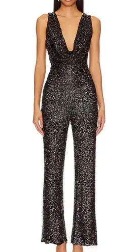 Good preowned condition. Still being sold on the website! Shine in this elegant black sequin jumpsui... Show more