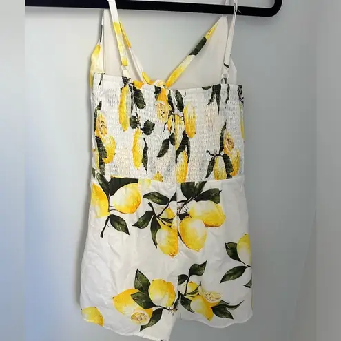 Adorable romper! Front keyhole cutout with tie detail on bust. Adjustable shoulder straps. V neck... Show more