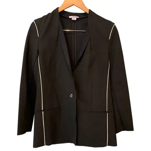 Helmut Lang Wool Jersey Origami Pierce Blazer. Deconstructed Helmet Lang blazer with contrast piping on the seams. Crepe- Buttoned cuffs, front welt pockets, white piped trims- Button fastening at front- 49% wool, 47% cotton, 2% elastane, 2% polyurethane; lining: 94% polyester, 6% spandex - Dry clean Color: Black Size:4 Approximate measurements laying flat: Length 28 1/2" Bust 32" Shoulder to shoulder 32" Condition: New without tags.