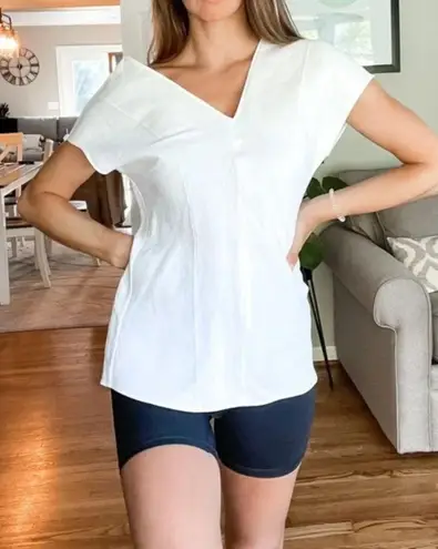 Helmut Lang White Linen Asymmetric Top V Neck Size 2 NWT - $90 New With Tags - From Ivy