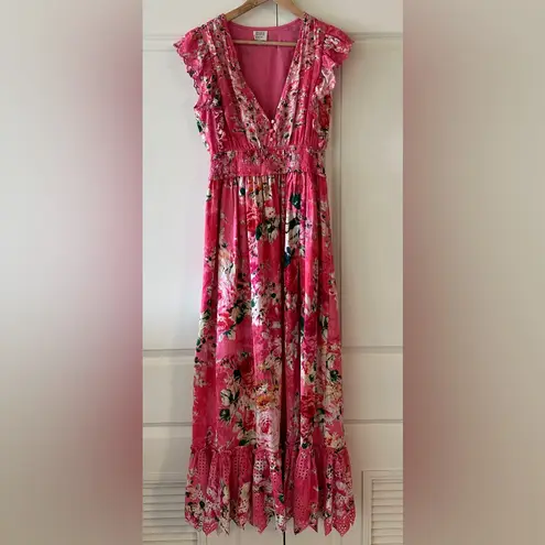Hemant and Nandita Tula Long Cotton Floral Eyelet Dress. New without tags. 100% cotton Made in India Dry clean only Partially lined Pull-on styling Flutter sleeves Plunging neckline Smocked waist with midweight linen fabric with floral embroidery and side seam slit Revolve Style No. BENE-WD261 Manufacturer Style No. HN-TULA-5297