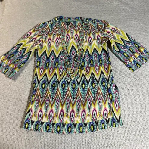 Hermanny by Vix Multicolored Beaded beach cover-up tunic peacock ikat Size Small Multiple - $25 - From Sophia
