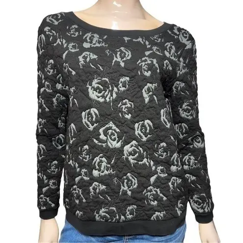 Hinge Nordstrom Women’s Size S Black Gray Rose Jacquard Bow Back Pullover Sweatshirt. Beautiful and... Show more
