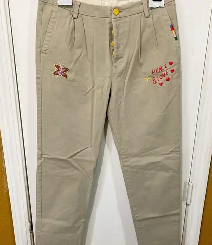 New with tags and extra button pack. History Repeats by Michelle Rossi. Size: women's IT 40 Model: PD96V Waist: roughly 14.75" flat across (stretches up to 15.25") Front Rise: 10.5" Hips: 20" flat across mid seam Inseam: 28.5" 97% cotton, 3% elastane. Made in Italy. Dry Clean.