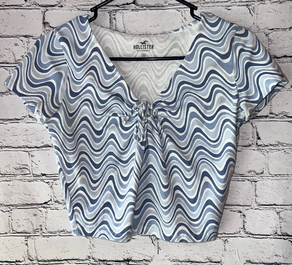Hollister key hole short sleeve crop top Fun , groovy print Size medium Like New ! PTP 19” Len... Show more