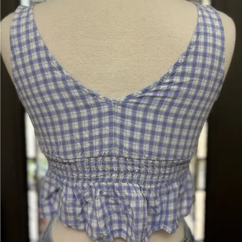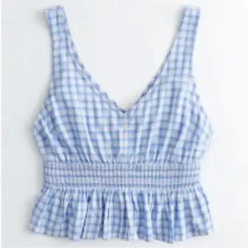 This Hollister tank top showcases a chic periwinkle and white gingham pattern with a smocked waist f... Show more