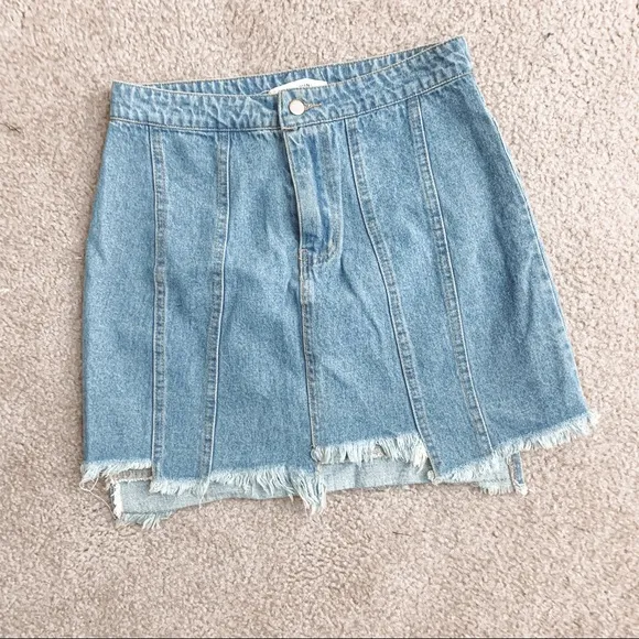 Honey Punch panel distressed raw hem denim skirt - $32 - From Jenna