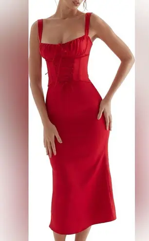 House of CB Valencia Duchess Satin Corset Midi Dress Red Size M - $180 - From Hannah