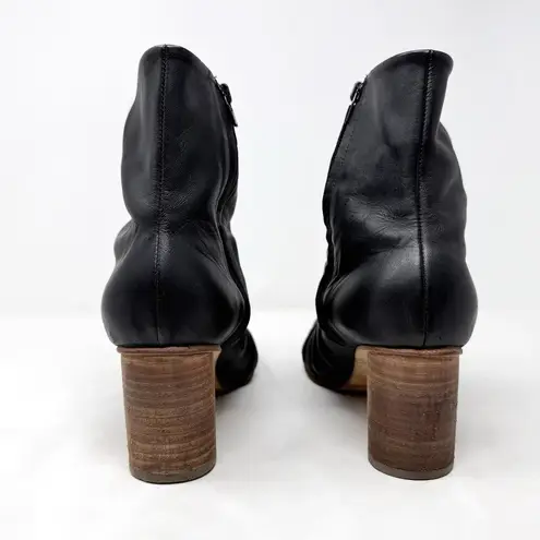 Huma Blanco Size 40 US 9 Black Leather Wanda Pointed Toe Ruched Ankle Boots Good, Pre-Owned Condition Size: EU 40, equivalent to a US 9 Brand: Huma Blanco Color: Black Side zip closure Ankle length Chunky block stacked wooden heel Pointed toe Ruched detail 100% Leather Heel Heights: 2.5 inches