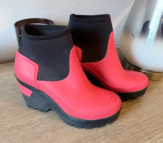 Hunter Heeled Wellington Rain Boots in Red/Black Size: UK5 / US 7 Color: red and black Condition:... Show more