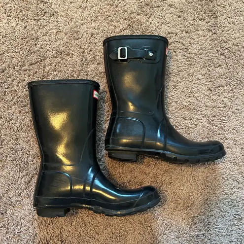 These are Hunter Women's Original Short Gloss Rain Boots in size 7. The gloss is fading.