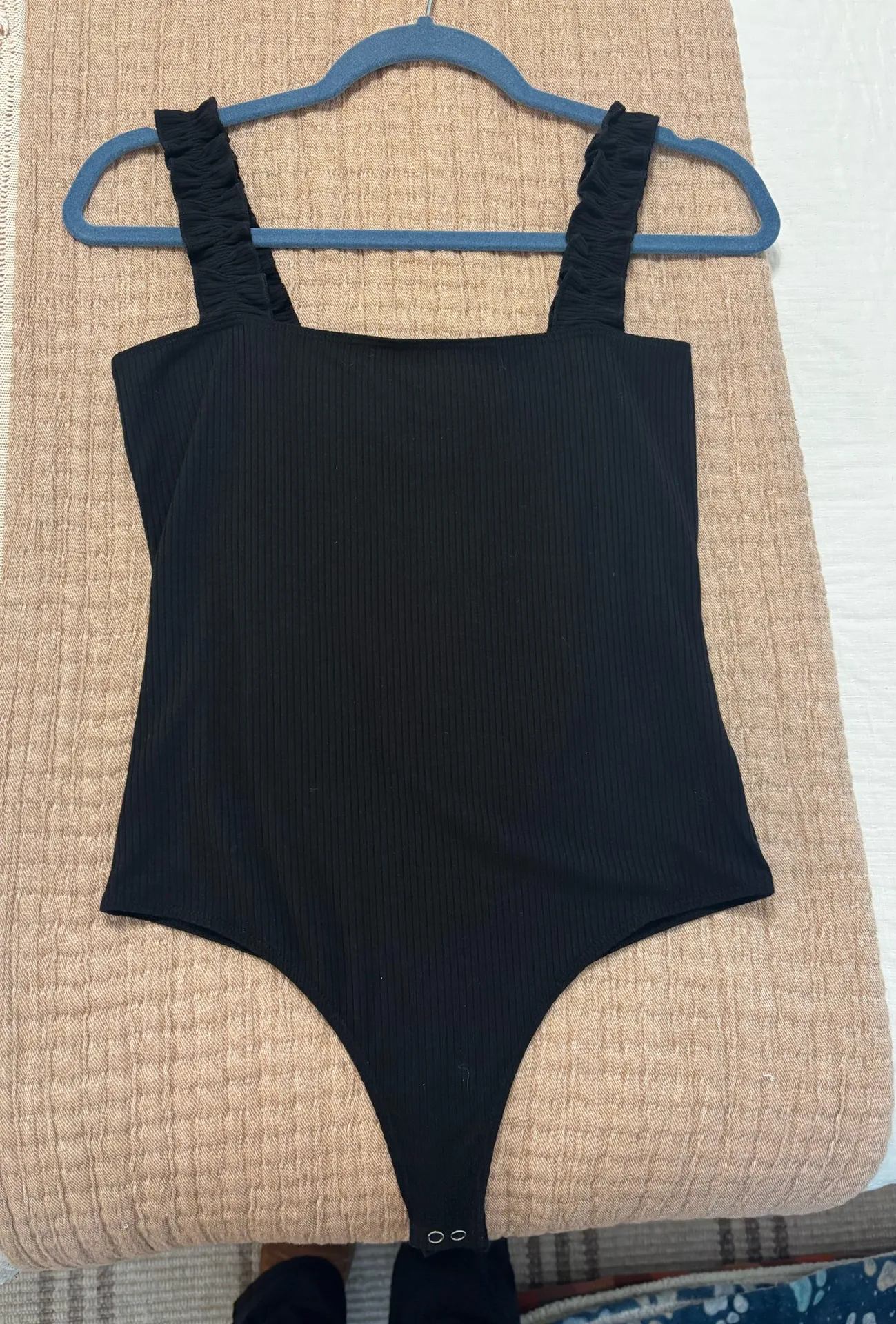 Ruffle straps, some stretch, ribbed texture Good condition no major signs of wear