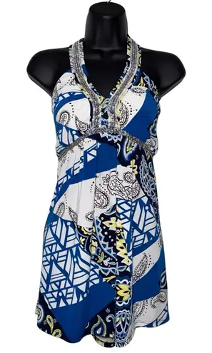 Y2K Core Paisley Halter Top Beaded rhinestone Embellished Neck Line Size xl All embellishments are present! Top is size XL, mannequin is a size xs & the top was clipped in the back to fit it to show style. Top is a true XL.