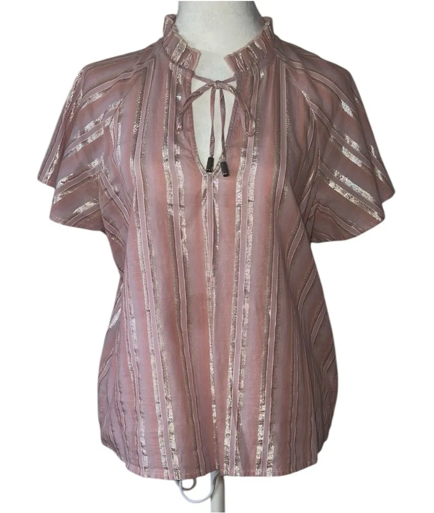This chic pink blouse from INC International Concepts features flutter sleeves and a stylish tie front, perfect for adding a touch of elegance to your wardrobe. The mandarin collar and flowing fit make it a versatile piece for any occasion.