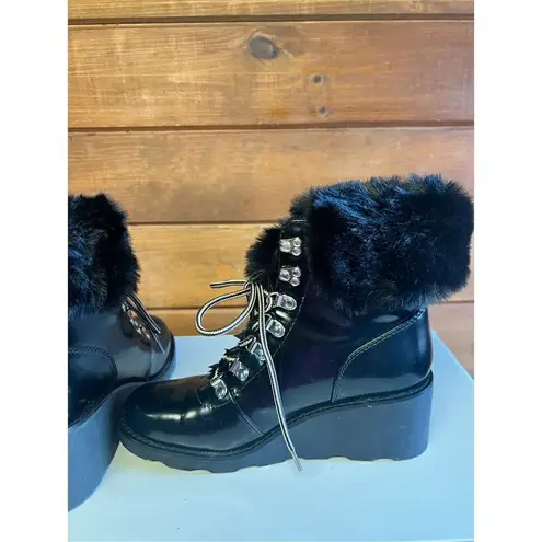INC Womens Hannia Patent Lace Up wedge Booties Sz 8.5 NWOT Black - $18 - From Dawn