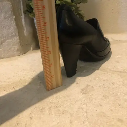 Indigo by Clarks black leather/patent leather low booties Slip on Chunky heel sz 10 Preloved... Show more