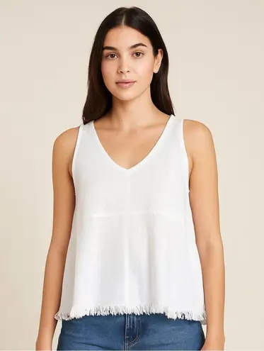 Raw hem, open back, lightweight linen blend tank top. Size large New without tags
