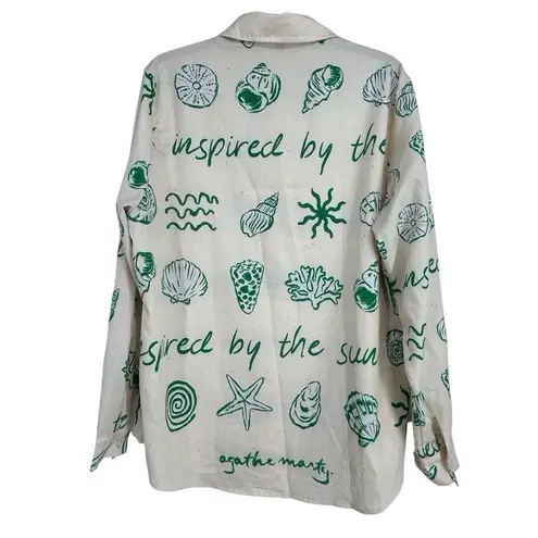 Bring coastal charm to your closet with the “Inspired by the Sun” Shell Print Shirt & Shorts Set, designed in a breezy, relaxed silhouette for effortless resort style. This two-piece matching set features a lightweight button-down shirt and elastic-waist shorts, covered in a hand-drawn shell and sunburst print in muted greens and corals on a soft cream base. Perfect for vacations, summer brunches, or laid-back beach days, this set blends artistic resortwear vibes with modern comfort. ⸻ ✨ Details: • Size: Women’s XL • Includes: Long-sleeve button-down shirt + matching shorts • Print: Coastal shell, sun, and wave motif in soft greens & corals • Material: Lightweight, breathable woven fabric • Condition: Pre-loved, good condition (no holes or stains; minor wear as shown) ⸻ 🌊 Why You’ll Love It: ✔ Coastal-modern aesthetic with artsy flair ✔ Relaxed fit for warm-weather comfort ✔ Easy to style together or as separates ✔ Perfect for travel, lounging, or resort days ⸻ 📦 Ships fast & packaged with care from a smoke-free home. #ShellPrintSet #ResortStyle #BeachOutfit #CoastalChic #MatchingSet #VacationStyle #BohoSummer #ArtInspiredFashion #XLStyle #TwoPieceSet #BeachyLook