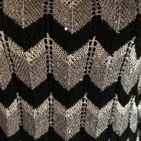 In excellent condition. Black, white and silver shimmery sweater with clear tiny sequins throughout.... Show more