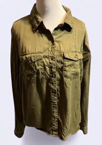Iris Women’s Blouse Bottom Up Long Sleeve Pocket Green L. Great pre owned condition Pit to Pit 22”... Show more
