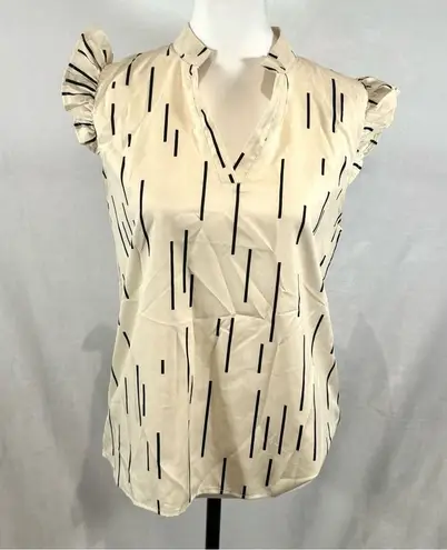 Ivory and black notched vneck short ruffle cap sleeve top size 6 - $10 - From Upstyle