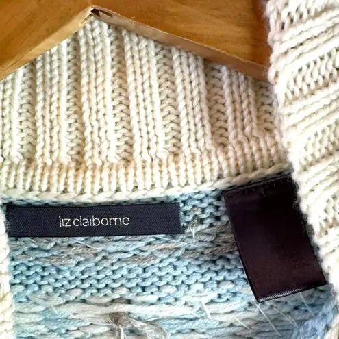 Liz Claiborne Ivory & Blue Fair Isle Cable Knit Turtleneck Sweater Size M This beautiful winter swea... Show more